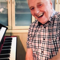 Playing the vibraphone in the classic swing style is only one of Graham’s many talents. He’s equally at home on keyboard, as pictured, and back in the day used to lead his own showband at Wallis’s Holiday Camp at Cayton Bay playing drums and xylophone. This is a classy multi-instrumentalist.